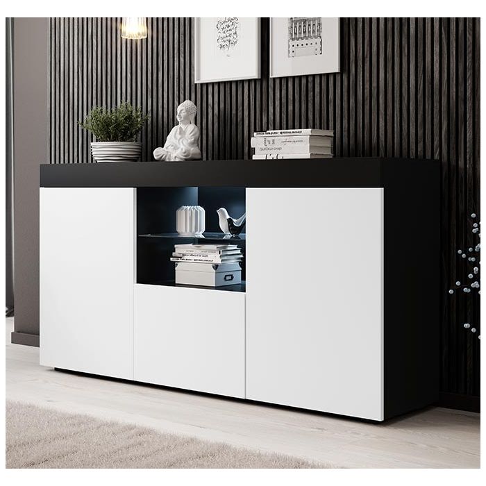 Credenza modello Natolia colore nero e bianco opaco 150 x 83 cm.