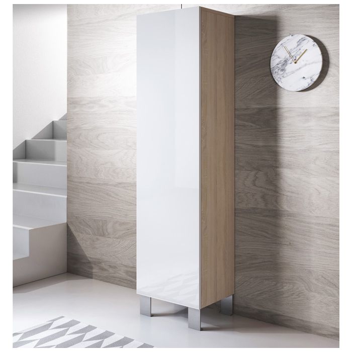Armadio modello Luke V4 (40x177cm) colore sonoma e bianco con piedini in alluminio