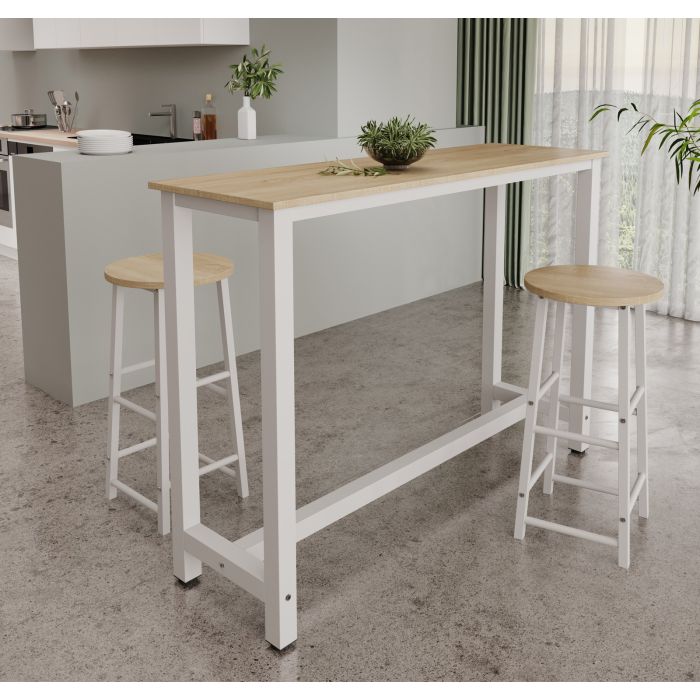 Tavolo alto con 2 Sgabelli Bianco e Sonoma 140 cm Ani