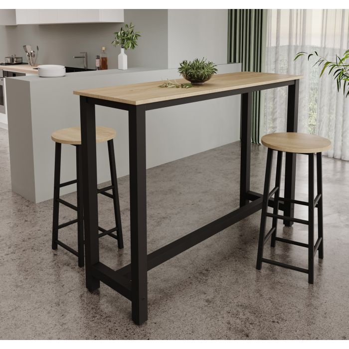 Tavolo alto con 2 Sgabelli Nero e Sonoma 140 cm Ani