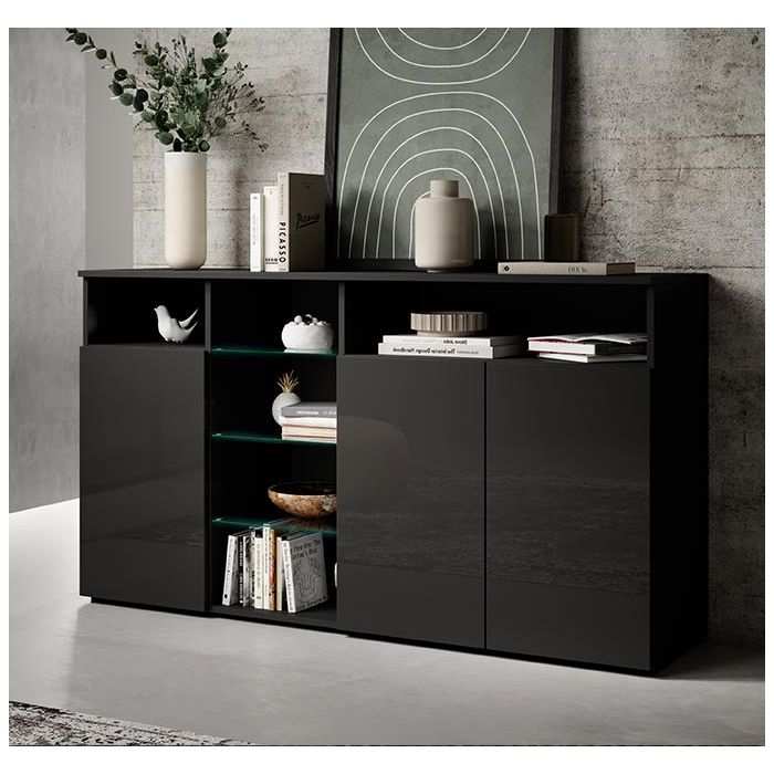 Struttura e ante con finitura melaminica lucidaRipiani in vetro