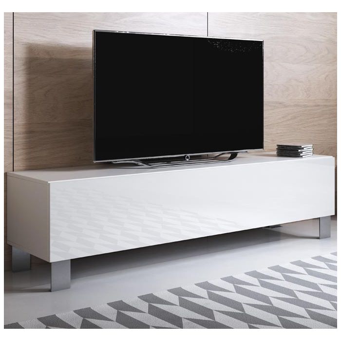 Mobile TV modello Luke H2 (160x42cm) colore bianco con piedini in aluminium
