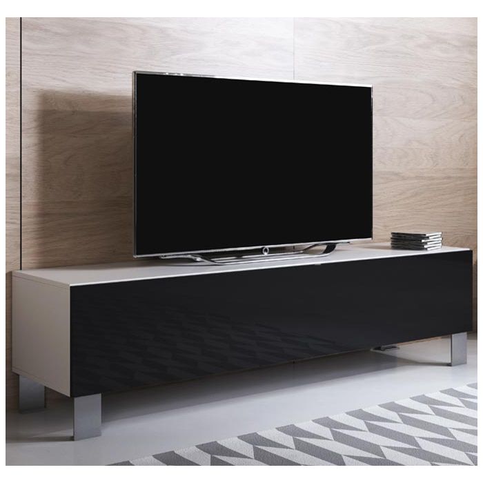 Mobile TV modello Luke H2 (160x42cm) colore bianco e nero con piedini in aluminium