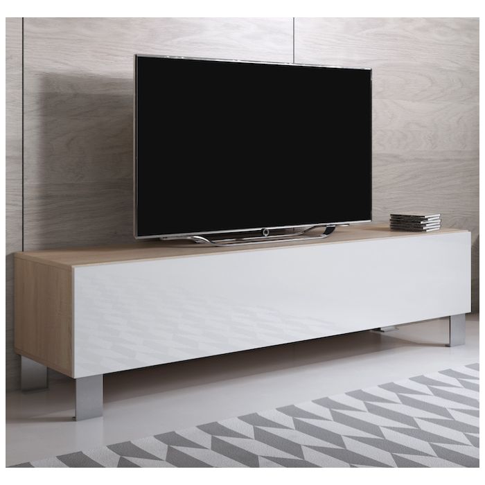 Mobile TV modello Luke H2 (160x42cm) colore sonoma e bianco con piedini in aluminium