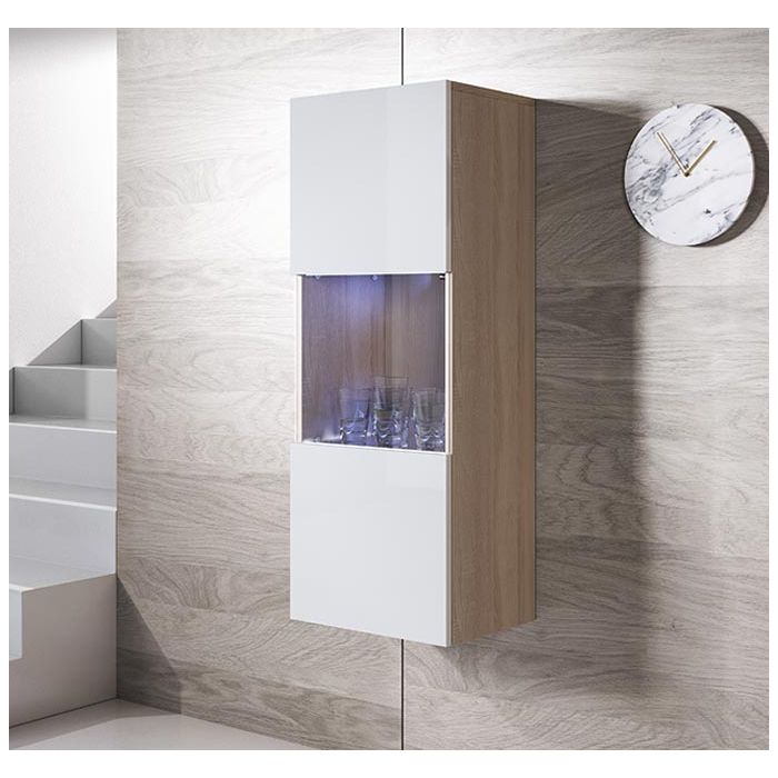 Vetrina pensile modello Luke V3 (40x126cm) colore sonoma e bianco
