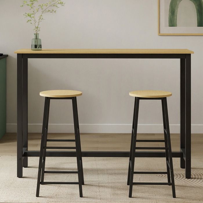 Tavolo alto con 2 Sgabelli Nero e Sonoma 140 cm Ani