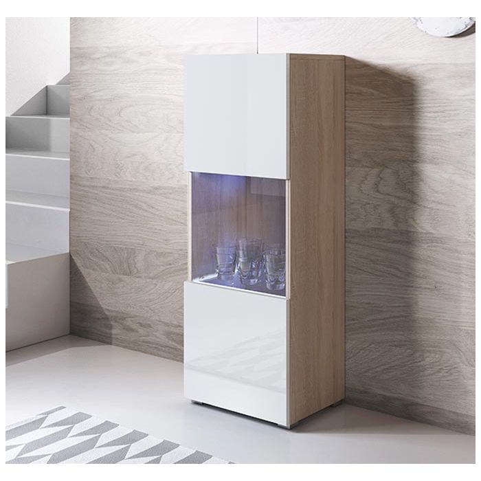 Vetrina modello Luke V3 (40x128cm) colore sonoma e bianco con piedini standard